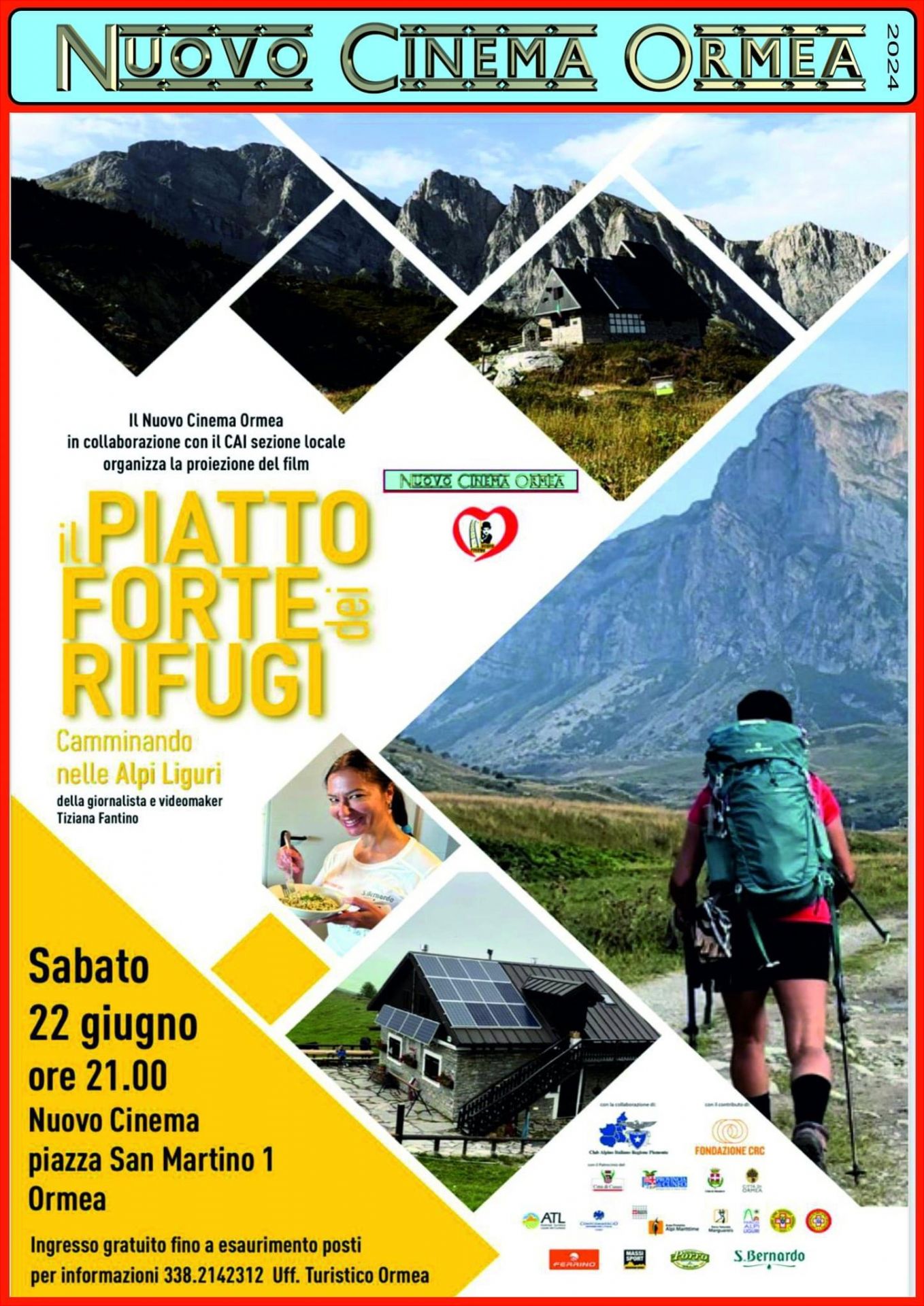 Alle ore 21.00 il Nuovo Cinema Ormea in collaborazione con il CAI sezione locale, organizza la proiezione del film: Il Piatto Forte dei Rifugi, camminando nelle Alpi Liguri della giornalista e videomaker Tiziana Fantino.