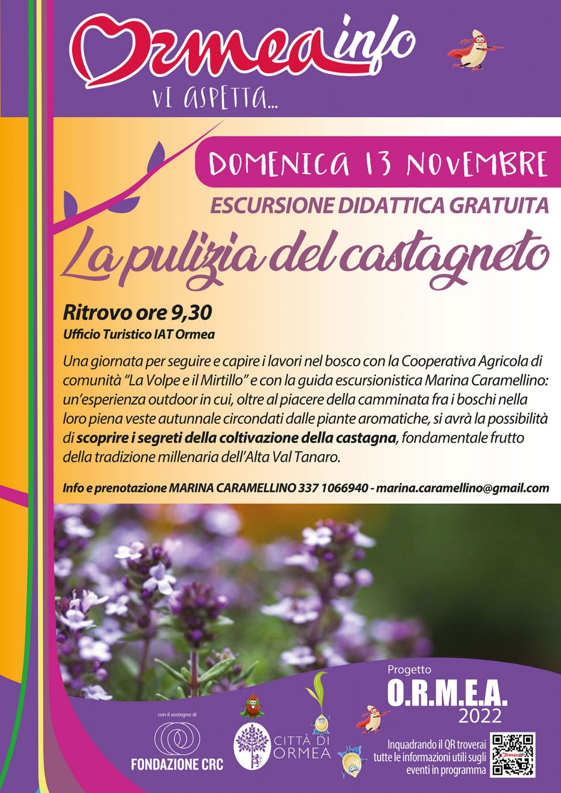 Per informazioni e prenotazioni contattare la guida escursionistica Marina Caramellino al numero: