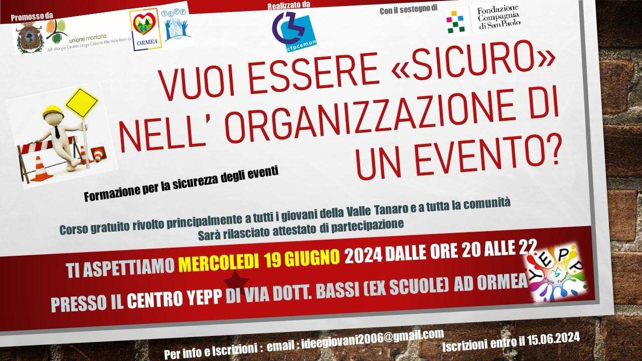 Dalle ore 20.00 alle 22.00 in via dott. Bassi, formazione per la sicurezza degli eventi.