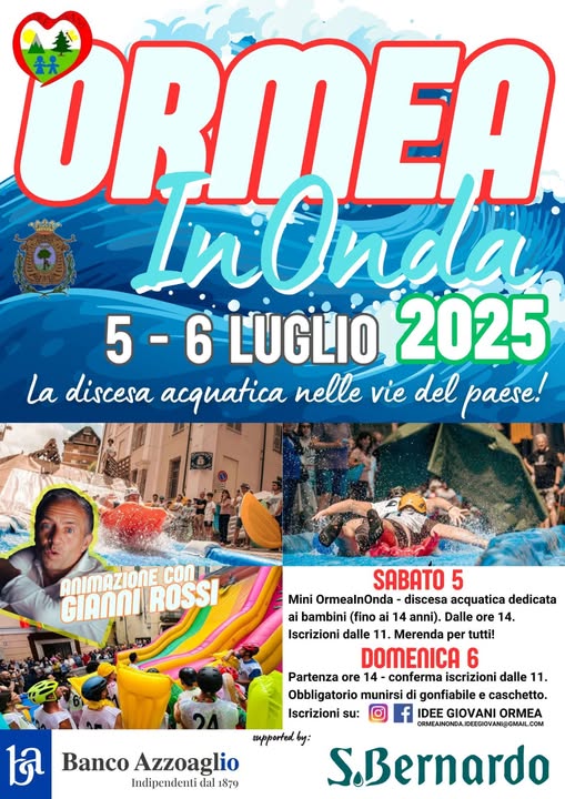 Tramite una rete sotterranea di tubature e di chiusini, l’acqua del Torrente Armella viene fatta esondare nelle vie del centro del paese, allagandole. Sfruttando questo sistema e grazie ad un’apposito allestimento, che trasformerà le strade, naturalmente in pendenza, in uno scivolo d’acqua, si darà vita a OrmeaInOnda, un’insolita ed esilarante gara acquatica.