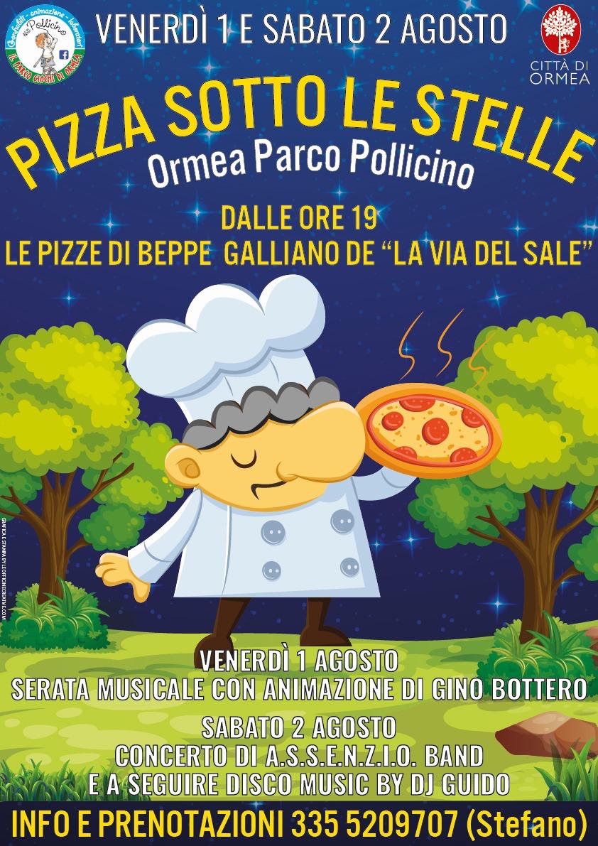 Venerdì 1 e sabato 2 agosto, a partire dalle ore 19, al Parco Pollicino per due serate all’aperto con le deliziose pizze preparate da Beppe Galliano de “La Via del Sale”.