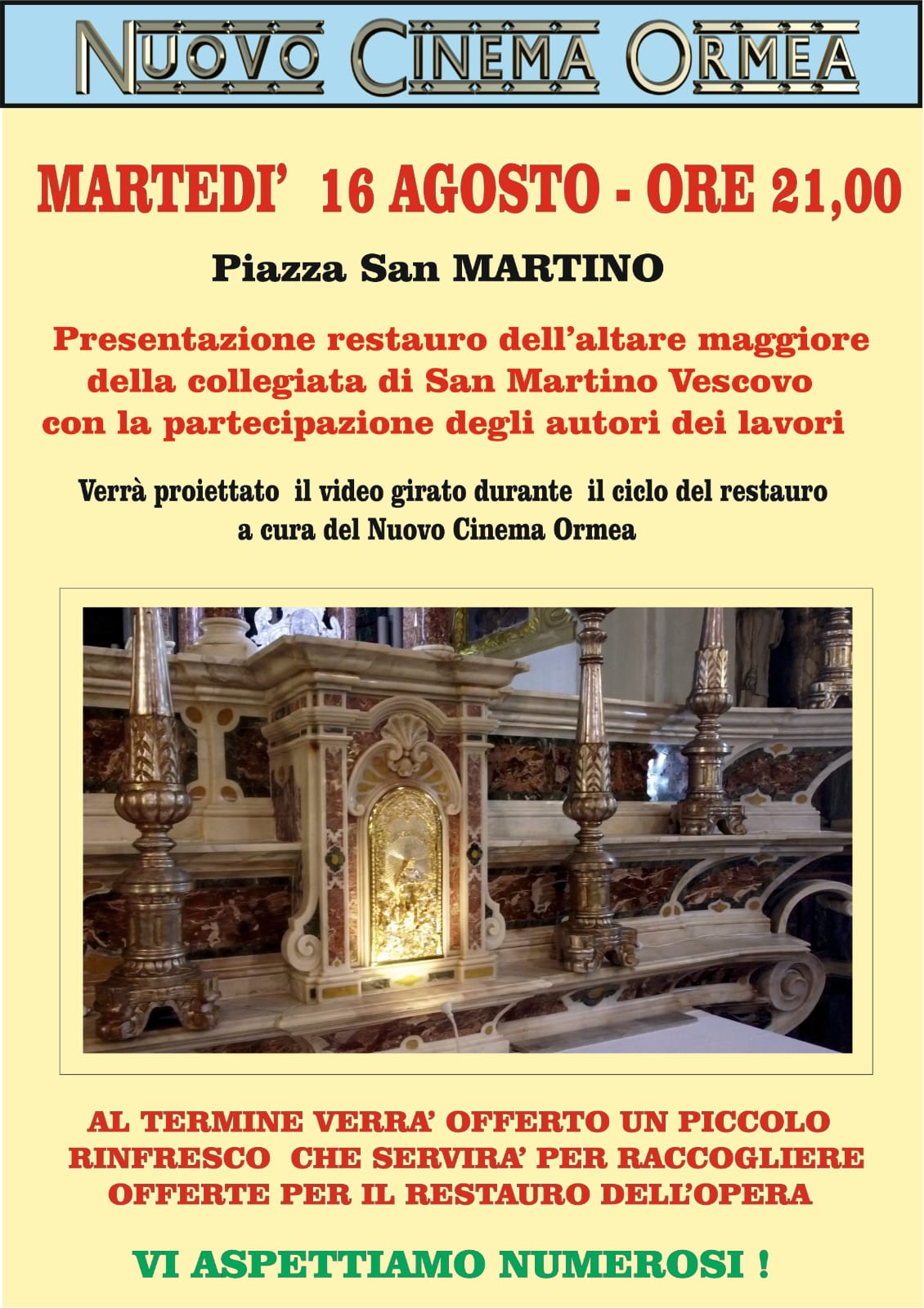 Al termine verrà offerto un piccolo rinfresco che servirà per raccogliere offerte per il restauro dell'opera.