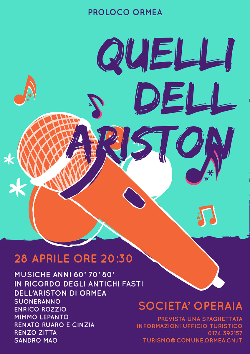 Satato 28 aprile presso la Sala Polivalente, Società Operaia alle ore 20.30
