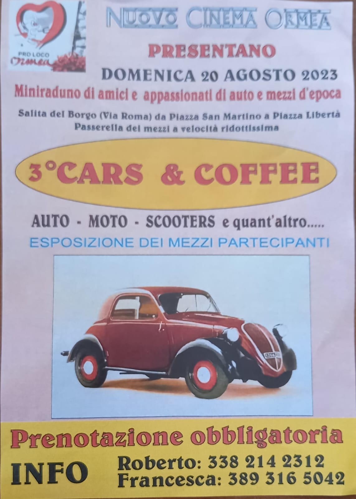 Quota iscrizione 10 € ogni auto/ moto