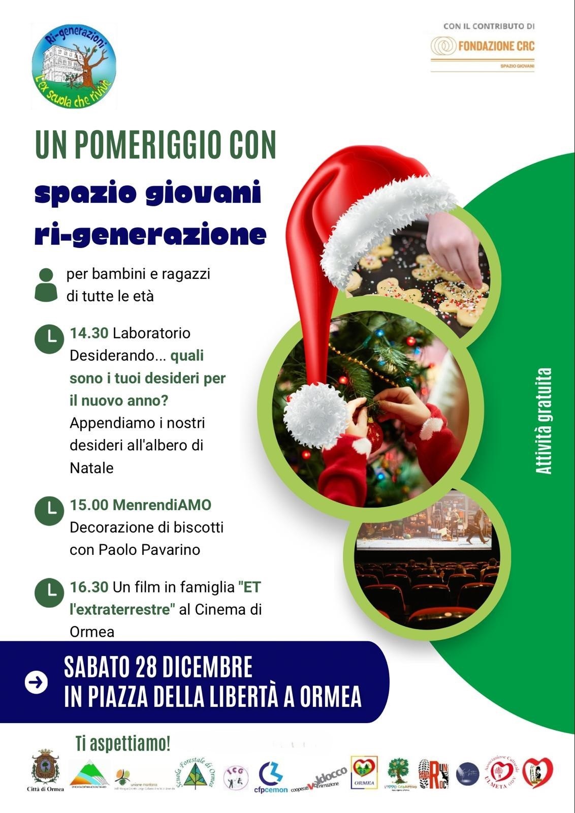 14.30 Laboratorio Desiderando... quali sono i tuoi desideri per il nuovo anno? Appendiamo i nostri desideri all'albero di Natale in Piazza della Libertà a Ormea.