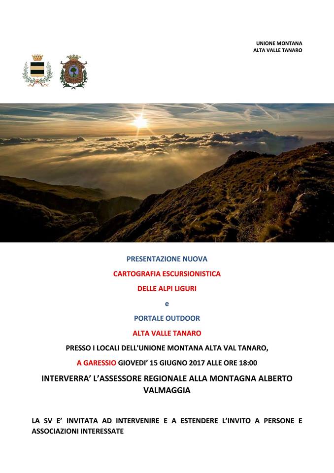 Giovedì 15 giugno 2017 alle ore 18,00 presso il Salone dell'Unione Montana Alta Valle Tanaro, si presenterà la nuova Carta Turistico - Escursionistica dell'Alta Valle Tanaro e verrà introdotto il nuovo portale dedicato allo sport outdoor della valle.