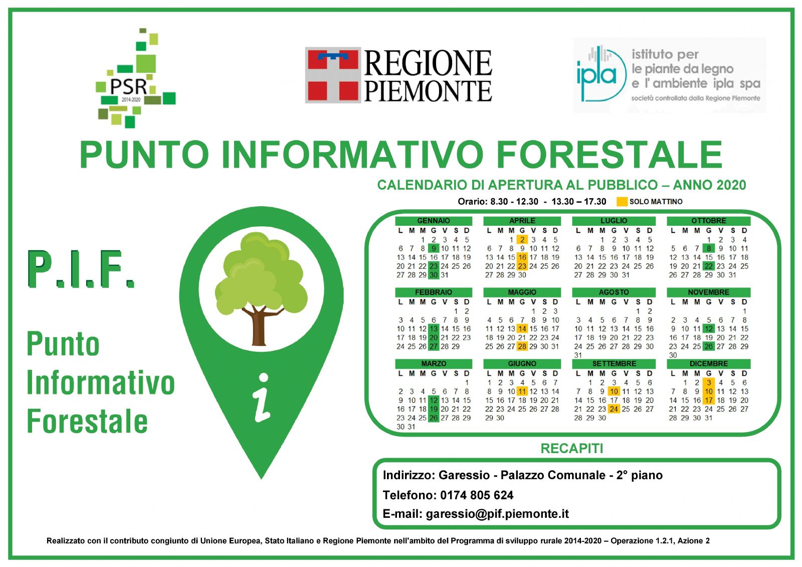 In allegato il calendario dei giorni di apertura del PIF per l'anno 2020