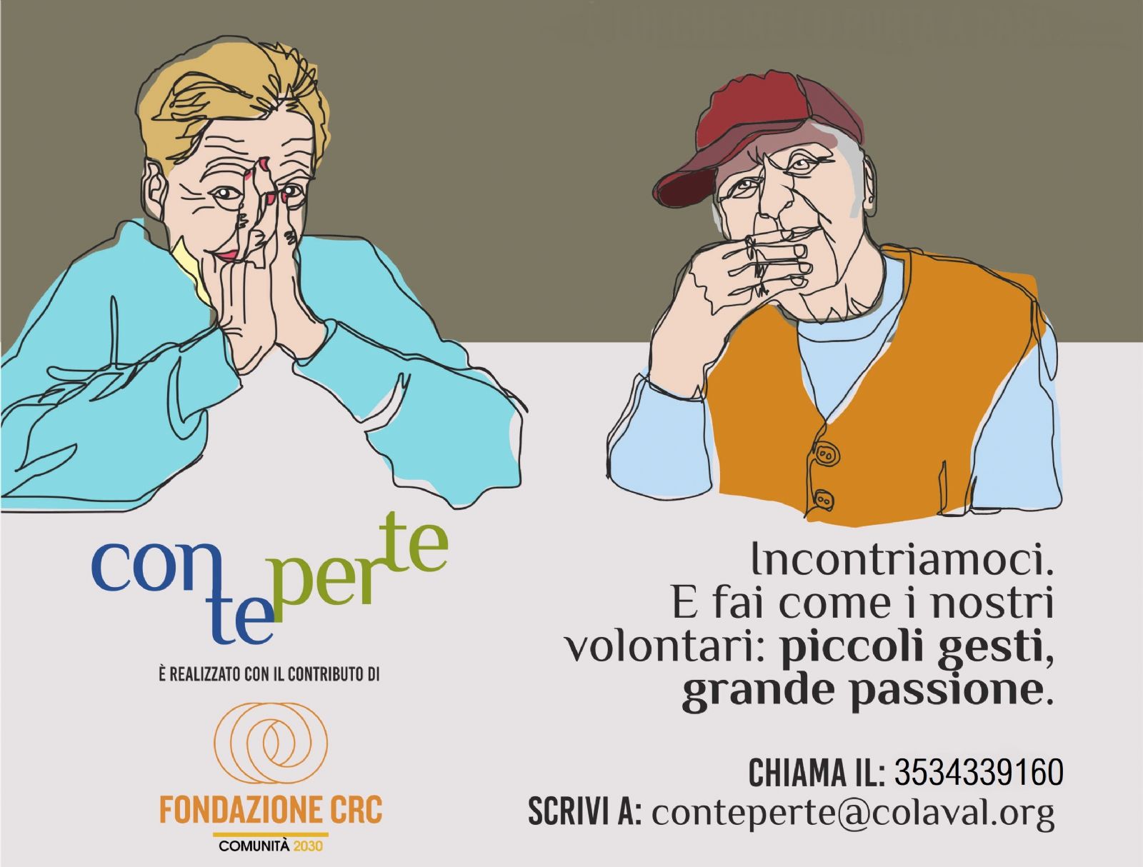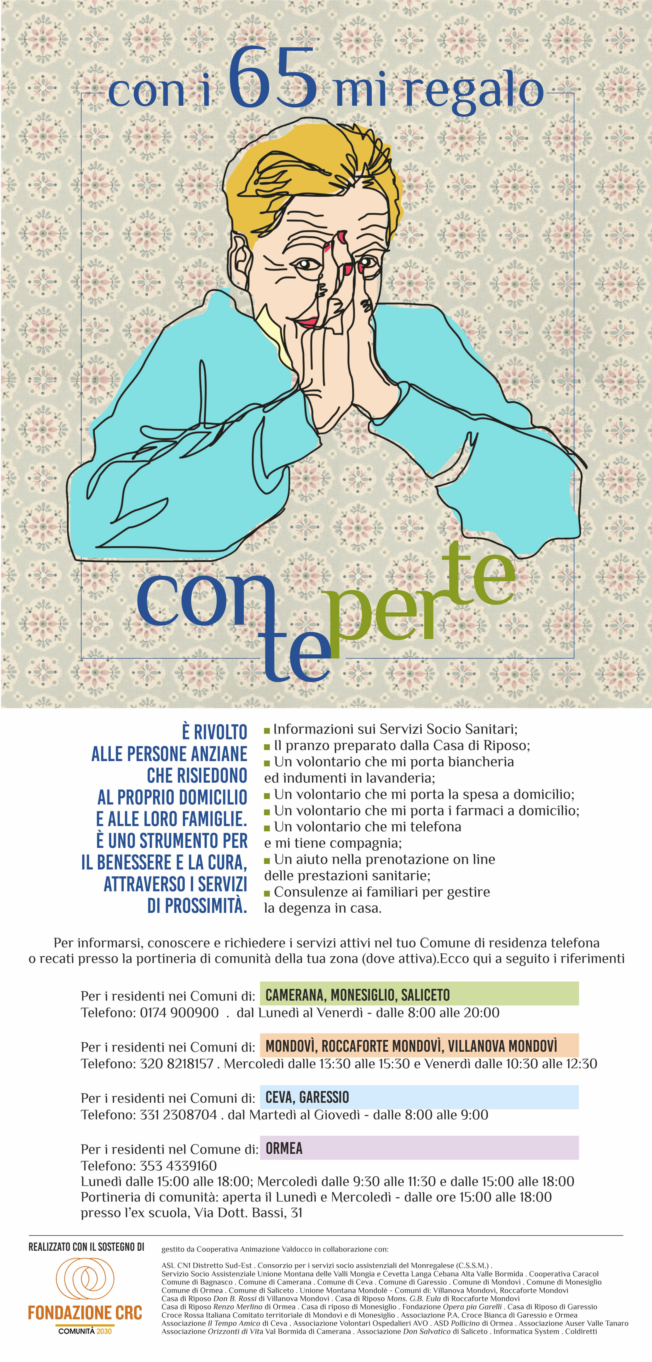 Il Progetto “Con Te Per Te”, realizzato con il sostegno della Fondazione CRC nell’ambito del Bando Comunità 2030, intende promuovere il lavoro collaborativo, sinergico ed innovativo con le comunità locali per rafforzare una rete articolata di servizi a sostegno della domiciliarità delle persone ultrasessantacinquenni.