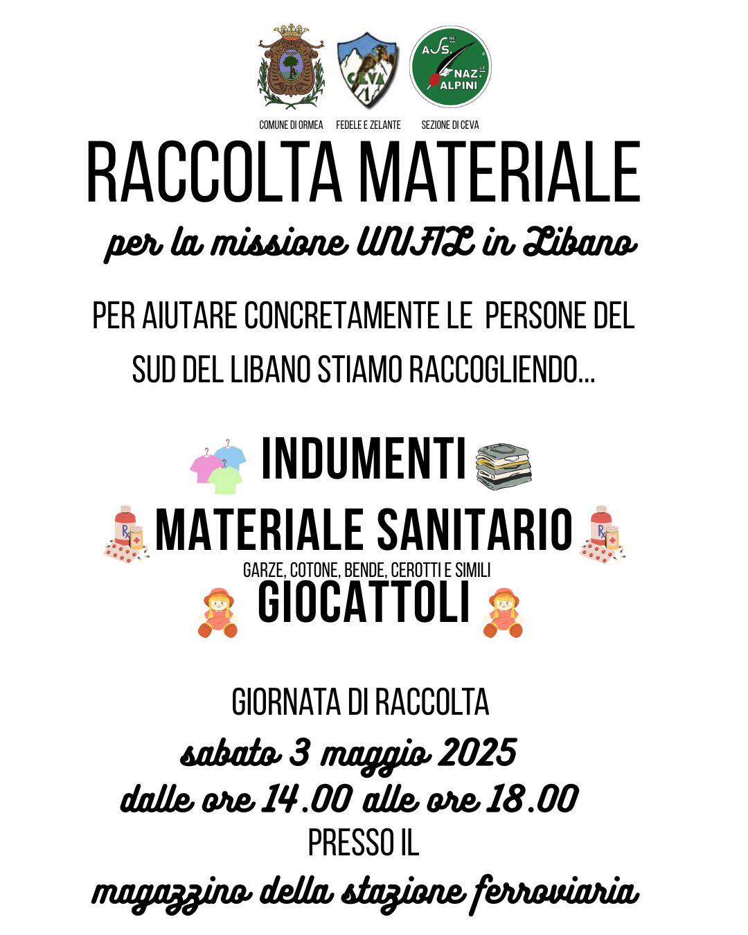 Giornata di raccolta di indumenti, materiale sanitario (garze, cotone, bende, cerotti e simili) e giocattoli destinati alle popolazioni del Sud del Libano, nell’ambito della missione UNIFIL.